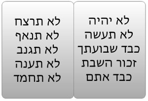 1″ And G-d spoke all these words [to the Israelites] saying:2 I am YHVH your divine ruler, who brought you out of the land of Egypt, out of the house of servitude; You shall have no other deities before me.3 You shall not make for yourself any crafted image or likeness, anything that is in the skies above, or that is on the earth below, or that is in the water beneath the Earth.4 You shall neither bow down to them nor serve them; for I YHVH your divine ruler, am a jealous deity, visiting the crimes of the fathers upon the children unto the third and fourth generation of those who hate Me;5 And showing mercy to the thousandth generation of those who love Me and keep My commandments.6 You will not swear by the name of YHVH your divine ruler falsely; for YHVH will not forgive those who take an oath in His name falsely.7 Remember to keep the Sabbath day holy.8 For six days you shall labour and do all your creating (work).9 But the seventh day is a Sabbath to YHVH your divine ruler; you shall not create or labour. Neither you, nor your sons and daughters, your male or female servants, your livestock, nor the visitor who is within your gates.10 For in six days YHVH made skies and Earth, the seas, and all that is in them; and He rested the seventh day, He blessed the Sabbath day and made it holy.11 Honor the traditions of your fathers, that you will have a long stay in the land that YHVH your divine ruler will give you.12 You shall not kill in hate.You shall not commit adultery.You shall not steal.You shall not bear false witness against your neighbor.13 You shall not desire your neighbor’s house; neither shall you shall desire your neighbor’s wife, his male or female servant, his ox, his burrow, nor anything that is your neighbor’s.”
